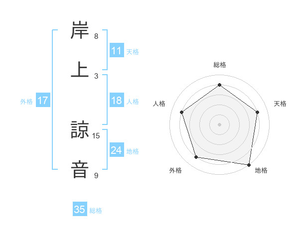 岸上 諒音さんの総格は35画の4点!
