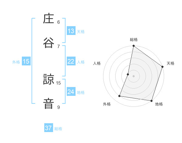庄谷 諒音さんを姓名の画数から五運を鑑定