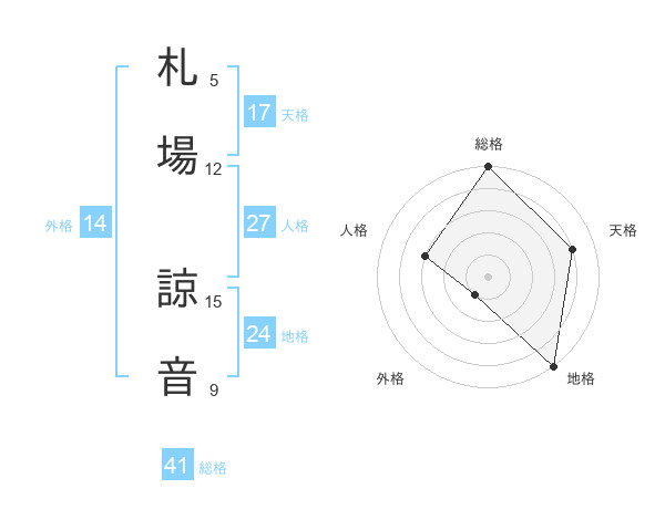 札場 諒音さんの天格は17画の4点!