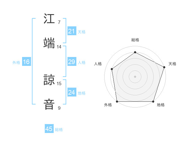 江端 諒音さんの総格は45画の4点!