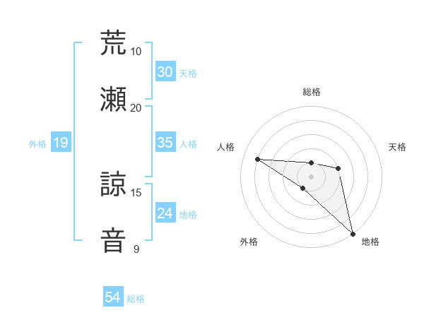 荒瀬 諒音さんの天格は30画の2点!