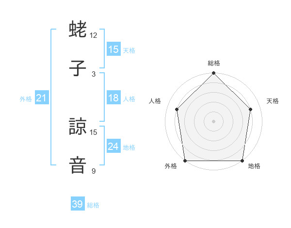 蛯子 諒音さんの総格は39画の5点!