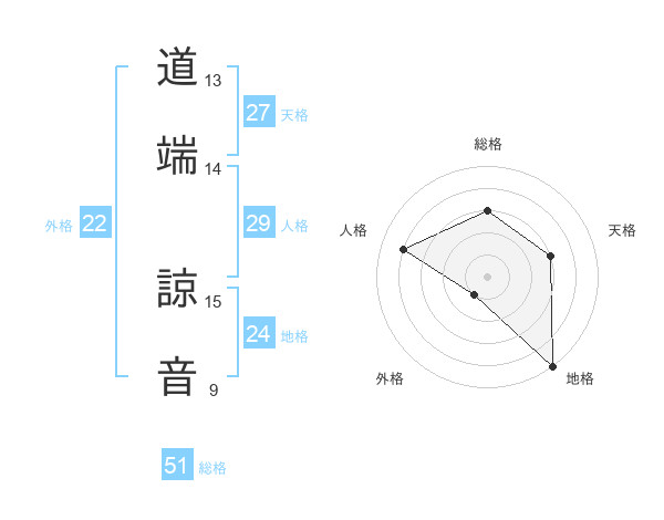 道端 諒音さんの総格は51画の3点!