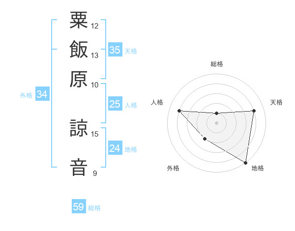 粟飯原 諒音さんを姓名の画数から五運を鑑定