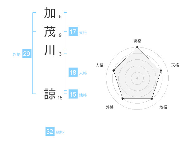 加茂川 諒さんの総格は32画の5点!