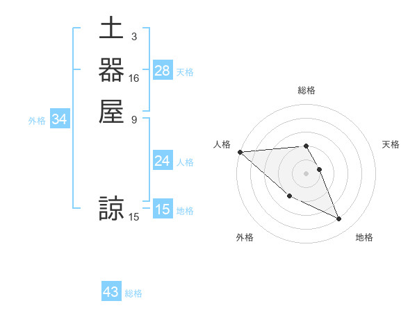 土器屋 諒さんの総格は43画の2点!