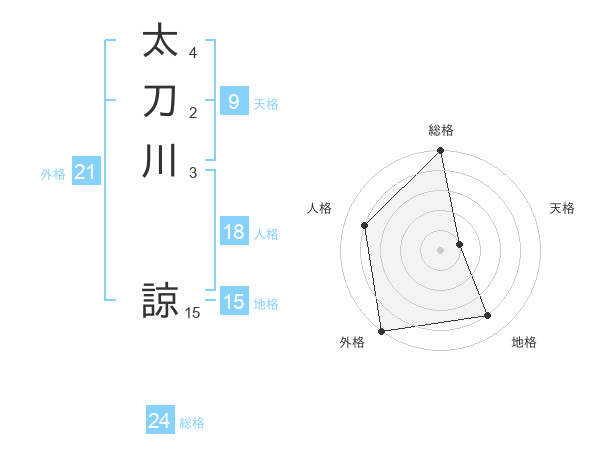 太刀川 諒さんの外格は21画の5点!