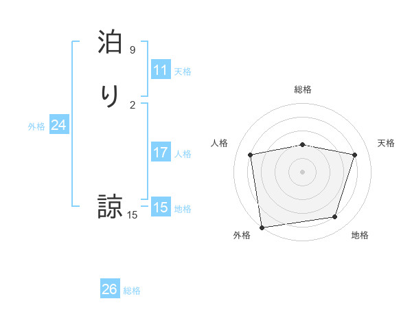 泊り 諒さんの総格は26画の2点!