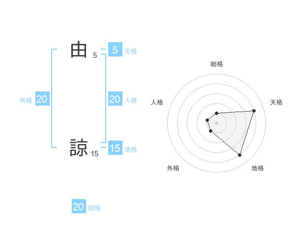 由 諒さんの総格は20画の1点!