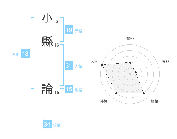 小縣 論さんの総格は34画の2点!