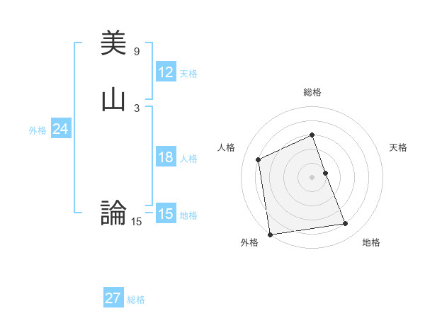 美山 論さんの外格は24画の5点!