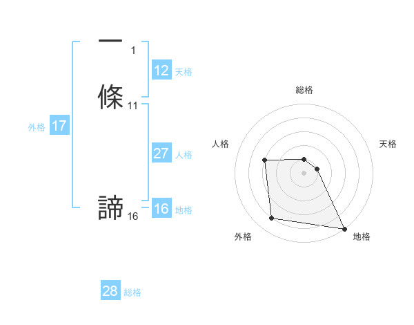 一條 諦さんの外格は17画の4点!
