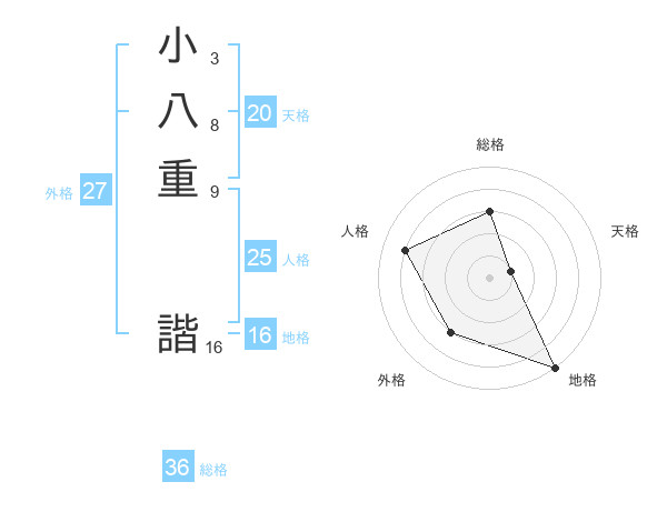 小八重 諧さんの外格は27画の3点!