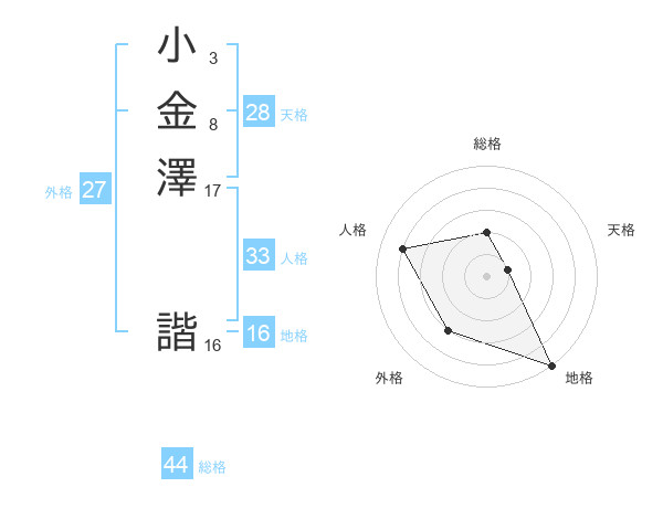 小金澤 諧さんの総格は44画の2点!