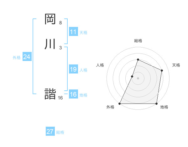 岡川 諧さんの総格は27画の3点!