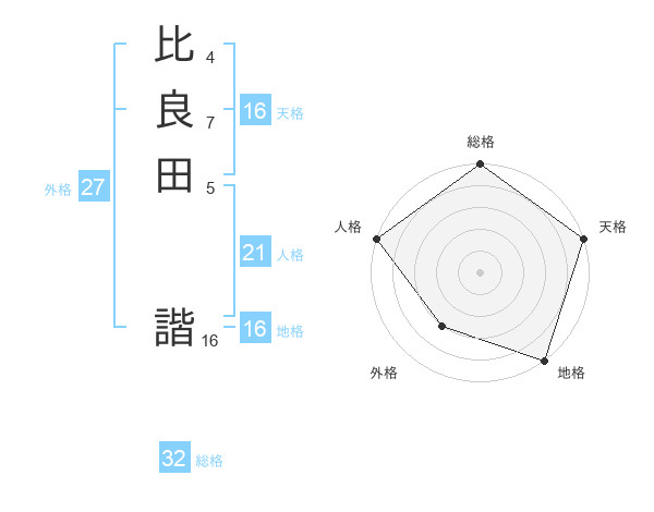 比良田 諧さんの天格は16画の5点!