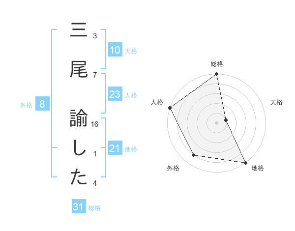 三尾 諭したさんを姓名の画数から五運を鑑定