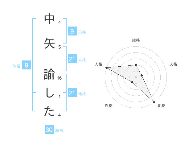 中矢 諭したさんを姓名の画数から五運を鑑定