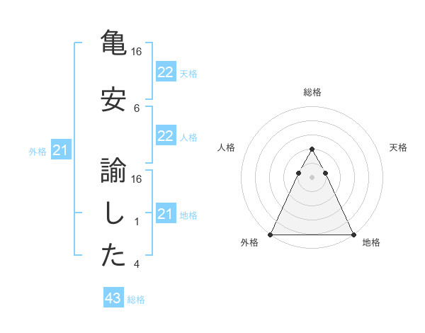 亀安 諭したさんの総格は43画の2点!