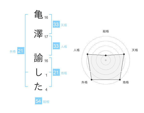 亀澤 諭したさんを姓名の画数から五運を鑑定