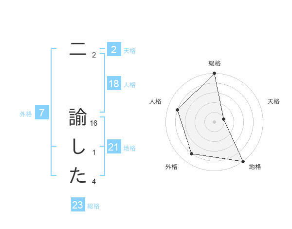 二 諭したさんの総格は23画の5点!