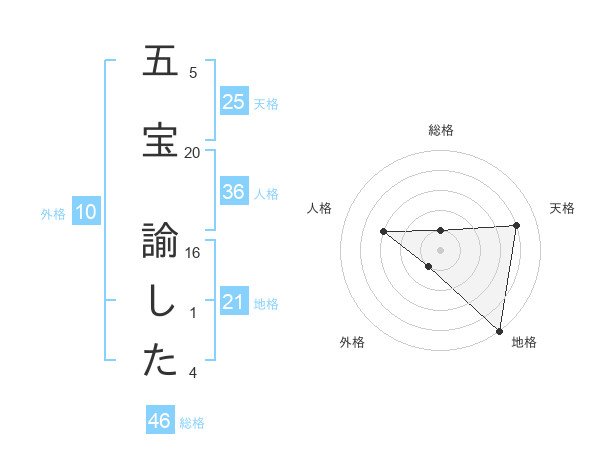 五宝 諭したさんを姓名の画数から五運を鑑定