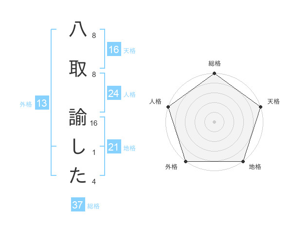 八取 諭したさんの地格は21画の5点!