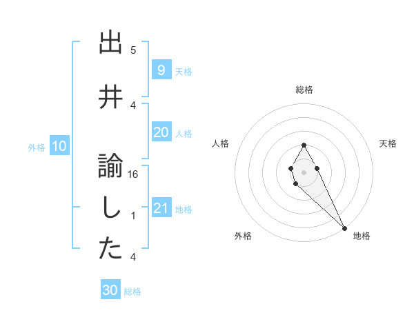 出井 諭したさんの地格は21画の5点!