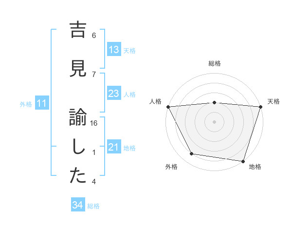 吉見 諭したさんの天格は13画の5点!