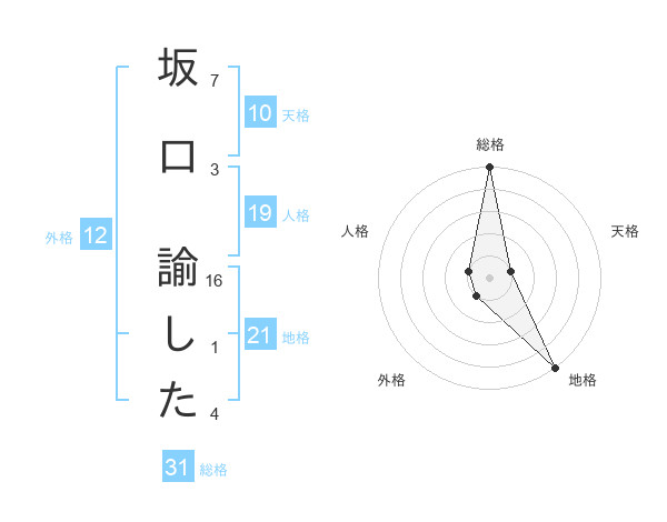 坂口 諭したさんを姓名の画数から五運を鑑定