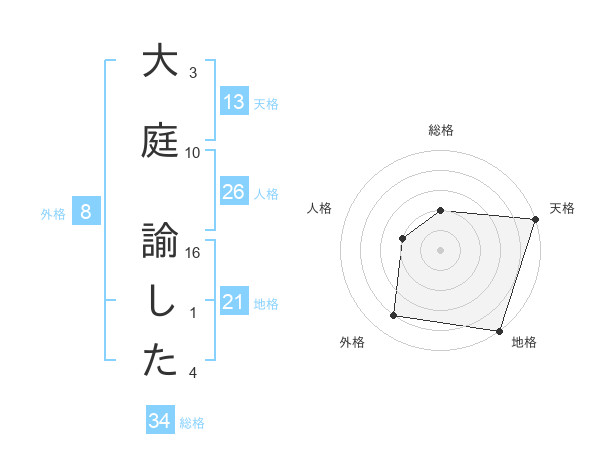 大庭 諭したさんを姓名の画数から五運を鑑定