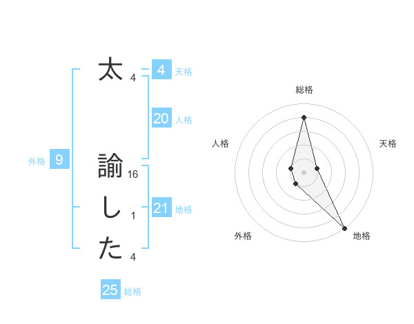 太 諭したさんの地格は21画の5点!