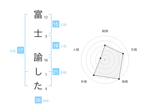 富士 諭したさんの天格は15画の4点!