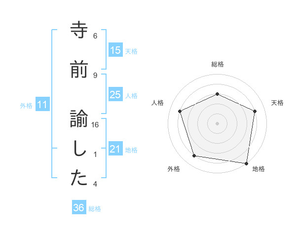 寺前 諭したさんを姓名の画数から五運を鑑定