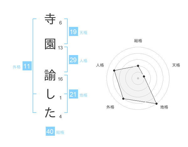 寺園 諭したさんの地格は21画の5点!