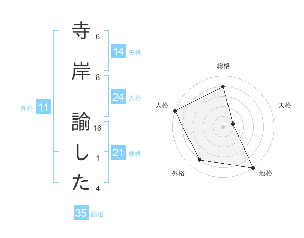 寺岸 諭したさんを姓名の画数から五運を鑑定