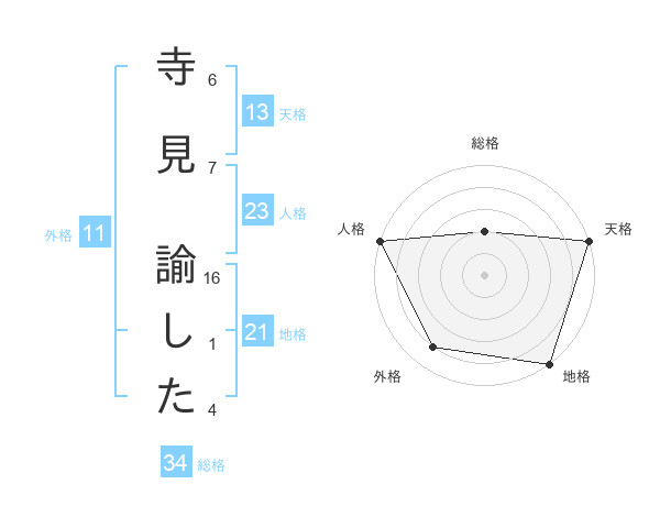 寺見 諭したさんの天格は13画の5点!