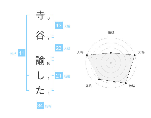寺谷 諭したさんの天格は13画の5点!