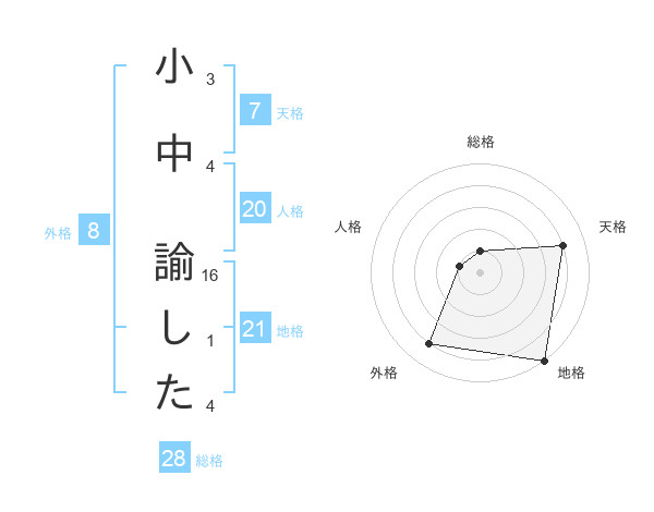 小中 諭したさんの天格は7画の4点!