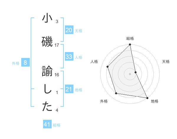 小磯 諭したさんを姓名の画数から五運を鑑定