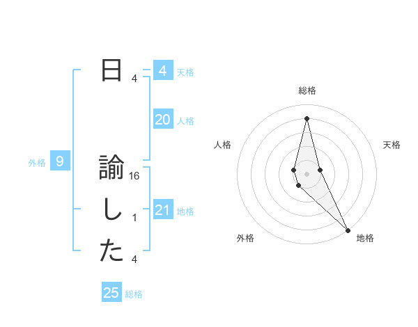 日 諭したさんの総格は25画の4点!