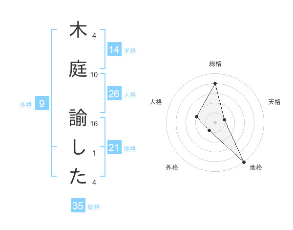 木庭 諭したさんを姓名の画数から五運を鑑定
