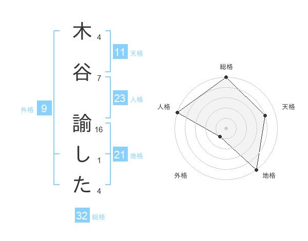 木谷 諭したさんを姓名の画数から五運を鑑定