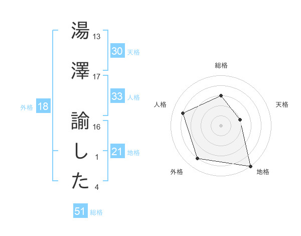 湯澤 諭したさんを姓名の画数から五運を鑑定