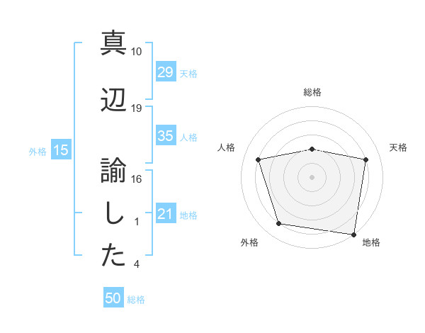 真辺 諭したさんの地格は21画の5点!