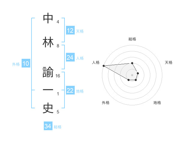 中林 諭一史さんの総格は34画の2点!