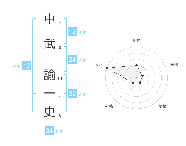 中武 諭一史さんを姓名の画数から五運を鑑定