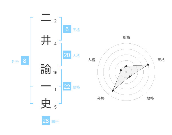 二井 諭一史さんを姓名の画数から五運を鑑定
