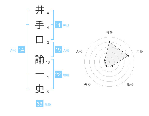 井手口 諭一史さんを姓名の画数から五運を鑑定