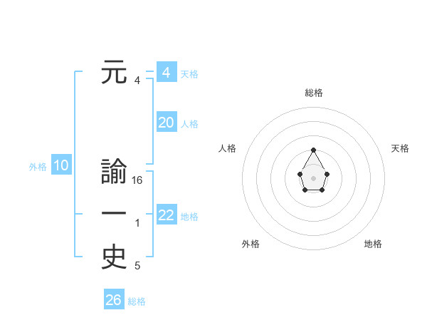 元 諭一史さんを姓名の画数から五運を鑑定